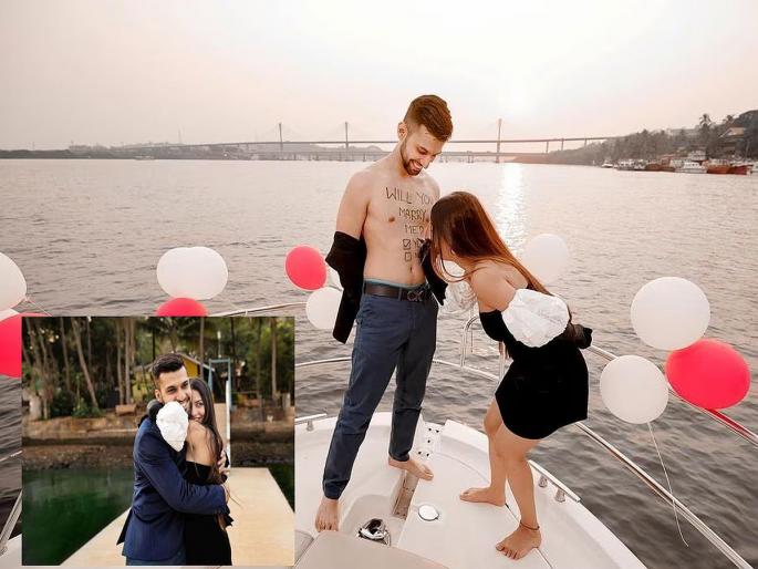 1 / 6ये हे मोहब्बते फेम अभिनेत्री कृष्णा मुखर्जी सध्या आपलं फेअरी टेल वालं जीवन जगत आहे. ती मर्चेंट नेव्ही ऑफिसर चिराग बाटलीवाला याच्याशी विवाह करणार आहे. मात्र लग्नाआधीच्या रिचुअल्सना ती ट्रेडिशनल आणि मॉर्डन पद्धतीने सेलिब्रेट करत आहे. हे फोटो पाहिल्यावर तुमच्याही हृदयाचे ठोके चुकल्याशिवाय राहणार नाहीत. 2 / 6कुष्णा मुखर्जी हिने हल्लीच तिच्या फॅन्सना तिच्या रोमँटिक वेडिंग प्रपोजलची झलक दाखवली आहे. हे फोटो पाहून वातावरणही रोमँटिक झाले. चिरागने कुष्णासाठी हे खास प्रपोजल छोट्याशा बोटीवर प्लॅन केले होते. 3 / 6कृष्णा मुखर्जीने तिच्या इन्स्टावर चिरागसोबत अनेक रोमँटिक फोटो शेअर केले. या फोटोंमध्ये तुम्ही तिच्या ड्रिमी लव्ह लाईफची झलक पाहू शकता. चिराग ब्लाईंडफोल्ड करून कृष्णाला घेऊन जाताना दिसत आहेत. कृष्णा खूप उत्सुक दिसत आहे. नंतर चिराग कृष्णासमोर गुडघ्यांवर बसलेला दिसत आहे. 4 / 6त्यानंतर चिराग बाटलीवाला शर्टलेस होऊन आपली बॉडी दाखवताना दिसत आहे. त्यावर विल यू मॅरी मी? असा प्रश्न विचारलेला आहे. तर त्याला उत्तरदाखल कृष्णाने यस या पर्यायावर टिक केली आहे. हा आनंदाचा क्षण दोघेही मिळून सेलिब्रेट करताना दिसत आहेत. तर कृष्णासुद्धा चिरागला सर्वांसमोर किस करताना दिसत आहे. 5 / 6चिरागला किस करताना कृष्णा मुखर्जीने तिला विवाहासाठी होकार दिला आहे. चिरागने कृष्णा मुखर्जीला इंप्रेस करण्यासाठी कुठलीही कसर सोडलेली नाही. रोमँटिक होत कृष्णाने चिरागसोबत खूप जबरदस्त फोटो काढले आहेत. या फोटोंमध्ये दोघेही एकमेकांमध्ये हरवलेले दिसत आहेत. 6 / 6अभिनेत्रीने हे रोमँटिक फोटो आपल्या इन्स्टाग्राम अकाउंटवर शेअर केले आहेत. त्यात लिहिलेय की चला लग्न करूया. कृष्णा मुखर्जीने आपल्या या खास रोमँटिक प्रपोजलदरम्यान, ब्लॅक मिनी ड्रेस घातला आहे. त्यावर व्हाइट फ्लकी स्लीव्ह होते. ते त्यांच्या आऊटफिलटा ग्लॅमरस टच देत होते.