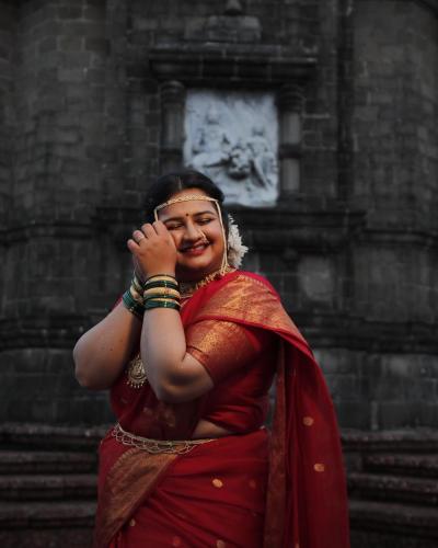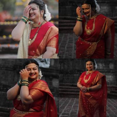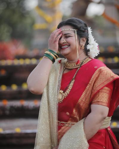 लाल रंगाच्या साडीमध्ये स्वीटूचं सौंदर्यं आणखीनच खुलून गेले आहे.