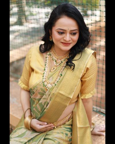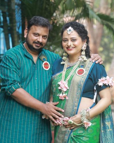 बेबी शॉवरसाठी मोनिकाने खास हिरव्या रंगाची साडी नेसली होती. अगदी साधा मेकअप तिने केला होता.