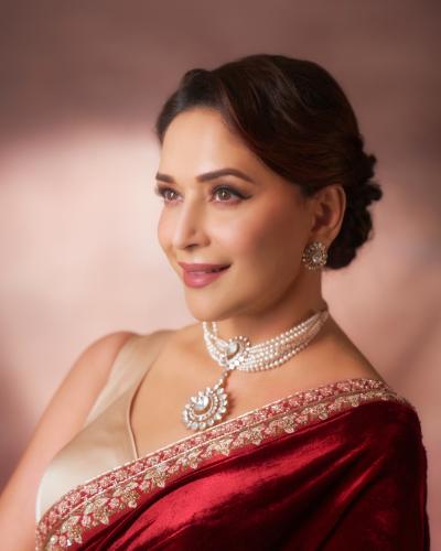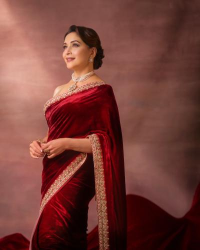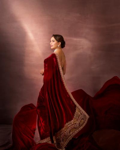 माधुरी दीक्षितने नुकतेच लाल रंगाच्या वेलवेट साडीत फोटोशूट केले आहे.