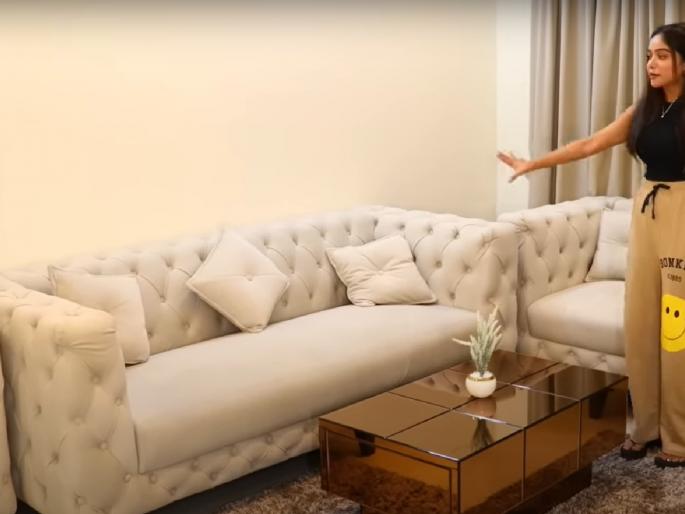 1 / 7बिग बॉस OTT 2 फेम मनीषा राणीने नुकतेच मुंबईत नवीन घर घेतले आहे. आता तिने यूट्यूबवर एक व्हिडीओ शेअर करून घराची झलक दाखवली. तिच्या घरात क्रीम रंगाच्या सोफ्यासह सोनेरी टेबल, कार्पेट आणि झुंबर बसवले आहे. मनीषाने तिच्या घरात गडद तपकिरी रंगाचे फर्निचर बसवले आहे. 2 / 7मनीषाला घर सजवण्यासाठी 20 दिवस लागले असल्याचं तिनं सांगितलं. याशिवाय तिनं घरासाठी 45 हजार रुपयांचे पडदे खरेदी केले आहेत.3 / 7मनिषानं घरात एक मोठा आरसा बसवला आहे. 4 / 7मॉर्डन अशा मनिषाच्या घरी सुंदर असं देवघरही आहे. चाहत्यांनी भेटवस्तू दिलेल्या वस्तूही तिने घरात ठेवल्या आहेत.5 / 7मनीषाचे घर अगदी प्रशस्त आहे. किचनपासून बेडरूमपर्यंत सर्व काही मनीषाने उत्तम प्रकारे डिझाइन केले आहे. तिनं आपल्या घरात एक फोटो वॉल तयार केली आहे. ज्यावर तिच्या जवळच्या व्यक्तीसोबतच्या फोटो फ्रेम लावलेल्या आहेत. 6 / 7तिचं मास्टर बेडरुमही अगदी सुंदर आहे. बेडशीट आणि पडदे तिनं सारख्या रंगाची लावली आहेत. शिवाय तिनं बेडच्या बाजूल लॅमलावले आहेत. त्यामुळे क्लासी असा लुक तिच्या बेडरुमला आला आहे. 7 / 7या आलिशान घरातील बाल्कनी मनिषाने लाइटिंग सजवली आहे.