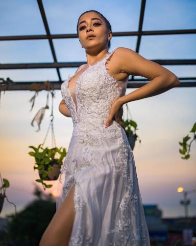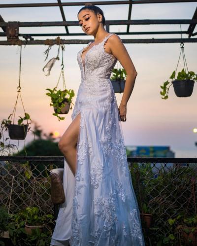 फोटोंमध्ये, टीनाने पांढऱ्या रंगाचा ट्रांसपेरेंट थाई हाय स्लिट ड्रेस घातला आहे, ज्यामध्ये ती खूपच हॉट दिसत आहे. (फोटो: इंस्टाग्राम)