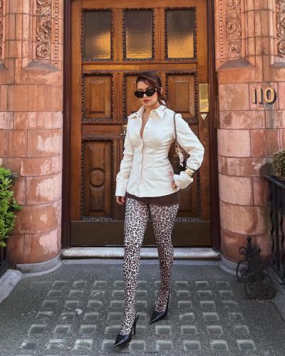 अवनीत कौरने तिच्या स्टनिंग लूकचे फोटो इंस्टाग्रामवर शेअर केले आहेत. ही अभिनेत्री लिओ प्रिंटच्या लांब स्टॉकीन्ससह पांढऱ्या शर्टमध्ये खूपच स्टायलिश दिसत आहे.