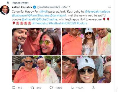 आपल्या ट्विटरवरुन सतिश कौशिक यांनी फोटो शेअर केले, त्यामध्ये नवीन विवाहित जोडपं रिचा चड्डा अन् अली फैजल यांना भेटल्याचं त्यांनी म्हटलं आहे.