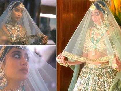 या फोटोवर लेंहग्यामध्ये जान्हवीचे सौंदर्यं आणखीनच खुलून गेले आहे. तिचा हा नववधू किंवा ब्रायडल लूक पाहून उलट सुलट चर्चा रंगत आहेत. प्रसिद्ध फॅशन डिझायनर मनीष मल्होत्राच्या ब्रायडल कलेक्शनसाठी हे खास फोटोशूट जान्हवीने केले आहे.याआधीही तिने आपल्या सोज्वळ अंदाजाने रसिकांना घायाळ केले आहे.