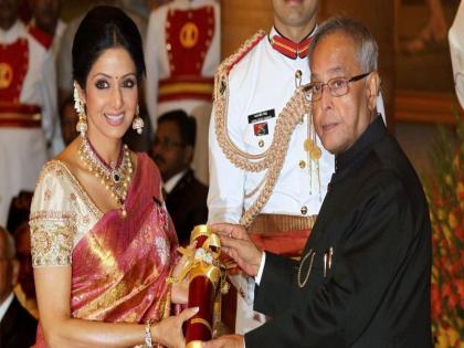 2013 मध्ये श्रीदेवी यांना सांस्कृतिक क्षेत्रातील योगदानासाठी 'पद्मश्री' पुरस्काराने सन्मानित करण्यात आलं होतं. श्रीदेवी यांना माजी राष्ट्रपती प्रणव मुखर्जी यांच्या हस्ते हा पुरस्कार प्रदान करण्यात आला. त्यामुळे श्रीदेवींना तिरंग्याचा मान मिळाला आहे. त्याचप्रमाणे पोलिसांनी 21 तोफांची सलामी देऊन त्यांचा सन्मानाने निरोप दिला.