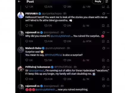 महेश बाबूने राजामौली आणि प्रियंका चोप्राची ट्विटरवर चेष्टा केली होती. त्यालाच प्रियंकाने पुन्हा एकदा हैदराबादची स्टोरी पोस्ट करत दुजोरा दिला. त्यांच्यातलं मजेशीर संभाषण चाहतेही एन्जॉय करत आहेत.