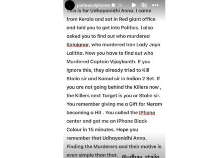 पुढे त्यांनी पोस्टमध्ये "जर तुम्ही याकडे दुर्लक्ष केलं तर मी तु्म्हाला सांगू इच्छितो की त्यांनी कमल हसन आणि तुमचे वडील एम के स्टालिन यांच्यावरही हल्ला केला होता. जर तुम्ही या हत्याऱ्यांना पकडलं नाही तर पुढचं टार्गेट तुम्ही किंवा स्टालिन सर असाल," असंही म्हटलं आहे. अल्फोंस यांच्या या पोस्टबाबत अद्याप कोणाकडूनही प्रतिक्रिया आलेली नाही. पण, त्यांच्या या पोस्टमुळे विजयकांत यांची हत्या झाली का? असा प्रश्न चाहत्यांना पडला आहे.