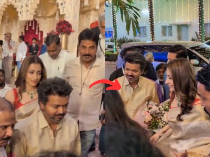 निर्माते कलपति सुरेश यांच्या मुलाच्या थलपति विजयने हजेरी लावली. त्यावेळी थलपतिसोबत अभिनेत्री त्रिशा कृष्णन दिसून आली. थलपति आणि त्रिशा यांच्यात अफेअर सुरु असल्याच्या चर्चा गेल्या अनेक दिवसांपासून रंगल्या आहेत. थलपतिच्या घटस्फोटाचं कारणही हेच मानलं जातंय. अशातच सर्व चर्चांना न जुमानता थलपति त्रिशासोबत या रिसेप्शनला पोहोचला. इतकंच नव्हे दोघांनी एकत्र फोटोशूटही केलं. या दोघांना एकत्र पाहताच सर्वजण थक्क झाले. थलपति आणि त्रिशाची जोडी सर्वांचं लक्ष वेधून घेत होती.