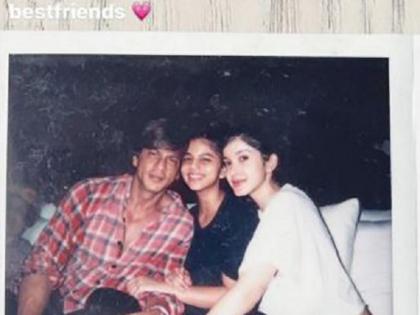 आणखी एका फोचोमध्ये सुहाना आपल्या आपल्या वडिलांसोबत आणि शनाया सोबत दिसत आहे. तिघंही एकमेकांसह खुप खुश असल्याचं दिसून येत आहे. बेस्ट फ्रेन्ड्स असं लिहित तिनं हा फोटो शेअर केला आहे.