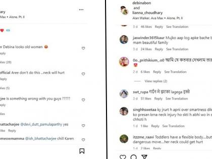 'तुम्हा दोघांना कळतंय का तुम्ही काय करताय ते?' असं एका युजरने म्हटलं आहे. तर, 'हे सगळं शो ऑफसाठी चाललंय', 'त्या लहान बाळाची मान लचकेल जरा विचार करा', 'हे दोघे जरा अतिशहाणपणाच करतात', 'देबिना किती वयस्कर दिसतीये', अशा कितीतरी कमेंट करत नेटकऱ्यांनी त्यांना ट्रोल केलं आहे.