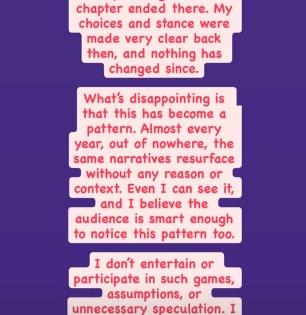 अभिषेकने आपल्या पोस्टमध्ये असंही लिहिलंय की, जेव्हा त्याच गोष्टी वारंवार घडतात, तेव्हा खूप वाईट वाटतं.शिवाय त्याने हे सुद्धा स्पष्ट केलंय की, त्याला अशा कोणत्याही चर्चांचा भाग व्हायचं नाही.