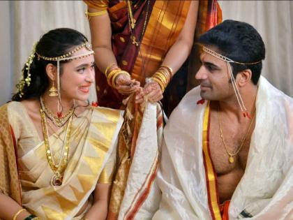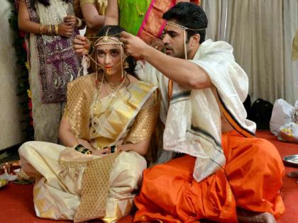 लग्नात नववधू गिरीजा सगळ्यांचे आकर्षण होती. फारच सुंदर ती दिसत होती. पिवळ्या रंगाची आणि हिरवे काठ असलेली नऊवारी साडी, कपाळावर चंद्रकोर, नाकात नथ, गळ्यात लक्ष्मीहार आणि मोत्याचे दागिने घालून गिरीजा जोशी सजली होती. तर चिन्मय उदगीरकरने गडद जांभळ्या रंगाचा सूट घातला होता. या फोटोंमध्ये नववधू गिरीजा जोशीचा अंदाज कुणालाही घायाळ करणारा असल्याचे पाहायला मिळत आहे. नवदाम्पत्याच्या विविध अदा, लग्नातील धम्माल मस्ती या फोटोत पाहायला मिळतेय.