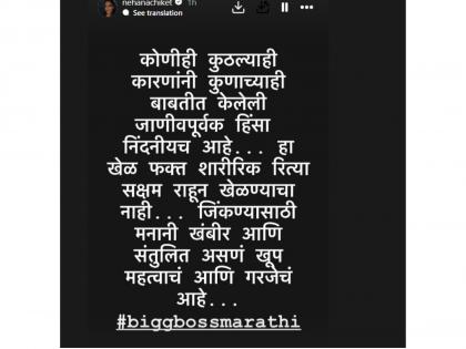 नेहाने ही पोस्ट करताच लोकांना तिच्यासोबत घडलेलं बिग बॉस मराठी २ चं प्रकरण आठवलंय. या प्रकरणात बिग बॉस मराठी २ मध्ये सहभागी असलेला शेफ पराग कान्हेरे आणि नेहा शितोळे या दोघांमध्ये मोठ्या प्रमाणात हिंसा झाली होती. त्यावेळी परागला बिग बॉसमधून बाहेर काढण्यात आलं होतं. परागला एक संधी पुन्हा दिली गेली होती. परंतु घरातील इतर सदस्य परागला घरात येऊ न देण्यावर ठाम होते. त्यामुळे परागचा बिग बॉस मराठी २ मधला प्रवास अर्ध्यावर संपला होता. नवीन सीझनमध्ये आर्या आणि निक्कीमध्ये झालेल्या हिंसेत बिग बॉस निक्कीला काय शिक्षा ठोठावणार याकडे सर्वांचं लक्ष आहे.