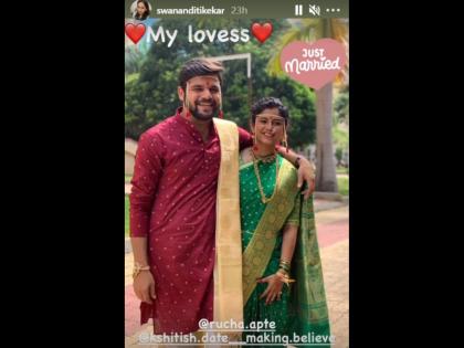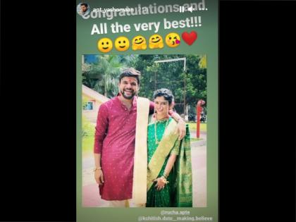 क्षितीश आणि ऋचा त्यांच्या लग्नातील एकही फोटो सोशल मीडियावर शेअर केला नाही. पण इन्स्टास्टोरीवर त्यांनी मित्रांनी पोस्ट केलेले फोटो शेअर करत त्यांचे आभार मानले आहेत. हिरव्या रंगाच्या साडीत ऋचा खूपच सुंदर दिसते आहे. ऋचाने गेल्याच वर्षी अभिनेत्री क्षितीश दातेसोबत साखरपुडा केला होता. मात्र इतरांप्रमाणे ऋचाने तिच्या साखरपुड्याची बातमी चाहत्यांसह शेअर केली नव्हती. साखरपुड्याच्या एक वर्षानंतर तिने फोटो सोशल मीडियावर पोस्ट केला होता.