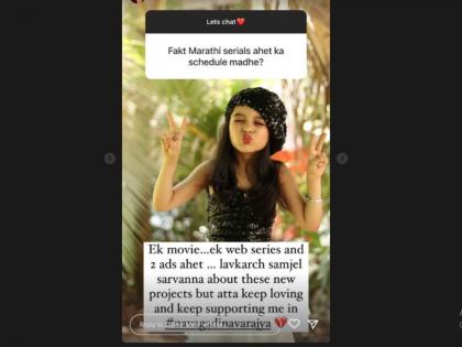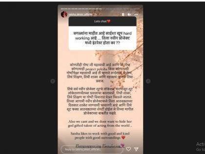 सोशल मीडियावर एका चाहत्याने विचारले की, फक्त मराठी मालिका आहेत का शेड्युलमध्ये. त्यावर साईशाने उत्तर देताना सांगितले की, एक सिनेमा, एक वेबसीरिज आणि दोन जाहिरात आहेत. या नवीन प्रोजेक्टबद्दल लवकरच समजेल सर्वांना. मात्र आता तुमचे माझ्यावरील प्रेम आणि पाठिंबा असाच कायम राहू दे.