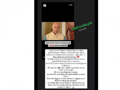 सयातनीने तिच्या इन्स्टाग्राम स्टोरीमध्ये रणवीर आणि जॉनी सिन्सच्या जाहिरातीचा व्हिडिओ शेअर केला आहे. "'सर्कस'मध्ये चांगला परफॉर्मन्स न देता आल्यामुळे 'सिम्बा'ला पण प्रोडक्टची जाहिरात करण्यासाठी टीव्ही प्लॅटफॉर्मवर यावं लागलं. हेल्दी टीका करा पण टीव्ही इंडस्ट्रीला कमी लेखण्याचा प्रयत्न केला जात आहे. सगळ्या गोष्टी परफेक्ट असतात असं नाही. छोटा पडदा म्हटलं जात असलं तरी आमचा आवाका मोठा आहे. आम्ही घराघरात पोहोचलो आहोत. नोकरीच्या संधी आम्ही उपलब्ध करतो. मोठे स्टारही प्रमोशनसाठी टीव्ही शोमध्ये सहभागी होतात. त्यामुळे कृपया थोडा आदर दाखवा. स्वत: काचेच्या घरात राहणाऱ्यांनी दुसऱ्यांच्या घरावर दगड फेकू नये," असं सयातनीने पोस्टमध्ये म्हटलं आहे. सयातनीची ही पोस्ट सोशल मीडियावर व्हायरल झाली आहे.