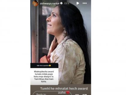 "खलनायिकेचा अवॉर्ड तुम्हाला मिळायला हवा होता. म्हणजे शार्गिवला...तुम्ही खूप छान काम करता", असं चाहत्याने म्हटलं. त्यावर रिप्लाय करत ऐश्वर्या म्हणाल्या, "तुम्ही हे म्हणालात हेच अवॉर्ड आहे". ऐश्वर्या नारकर या झी मराठीवरील 'सातव्या मुलीची सातवी मुलगी' मालिकेत खलनायिकेच्या भूमिकेत आहेत.