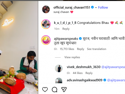 'बिग बॉस मराठी ५' चा विजेता आणि रिल स्टार सूरज चव्हाण सध्या त्याच्या आयुष्यातील अत्यंत महत्त्वाच्या टप्प्यावर आहे. एका बाजूला २९ नोव्हेंबर रोजी तो संजना गोफणेसोबत लग्नबंधनात अडकणार आहे. तर दुसऱ्या बाजूला आज त्याने त्याच्या नवीन आलिशान घरात गृहप्रवेश केला आहे. या दुहेरी आनंदामुळे सोशल मीडियावर त्याच्यावर अभिनंदनाचा वर्षाव होत आहे. मात्र, या सगळ्या शुभेच्छांमध्ये एक कमेंट खूपच खास ठरली आहे. ती म्हणजे थेट महाराष्ट्राचे उपमुख्यमंत्री अजित पवार यांची. गृहप्रवेशाच्या व्हिडीओवर कमेंट करत अजित पवार यांनी सूरजला शुभेच्छा दिल्या आहेत.