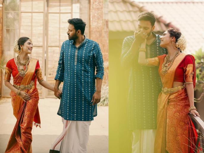 साउथ इंडियन स्टाईलमध्ये अभिनेत्रीने साखरपुडा केला आहे. या साखरपुड्याच्या फोटोला चाहत्यांनी पसंती दिली आहे