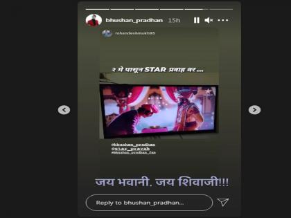 स्टार प्रवाह परिवार पुरस्कार सोहळा नुकताच पार पडला. या पुरस्कार सोहळ्यात भुषणने शिवाजी महाराजांवरील एक परफॉर्मन्स सादर केला होता. या परफॉर्मन्सनंतर त्याने या मालिकेविषयी सांगितले. भुषण सोशल मीडियावर चांगलाच सक्रिय असतो. त्याने सोशल मीडियाच्या अकाऊंटद्वारे काही दिवसांपूर्वी त्याच्या या नव्या इनिंगबाबत सांगितले होते. भुषणने त्याच्या मालिकेचा उल्लेख केला नसला तरी मी आठ वर्षांनंतर पुन्हा एकदा माझ्या आवडत्या माध्यमाकडे वळत असून मी त्यासाठी खूपच उत्सुक आहे असे त्याच्या पोस्टमध्ये लिहिले होते. आता त्याने इन्स्टास्टोरीत जय भवानी जय शिवाजी या मालिकेतील त्याचा फोटो पोस्ट केला आहे.
