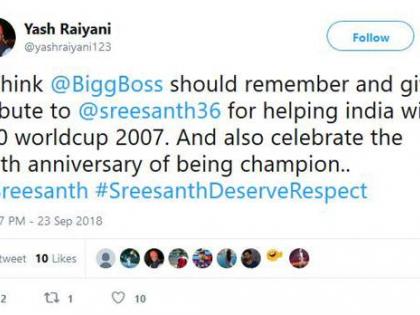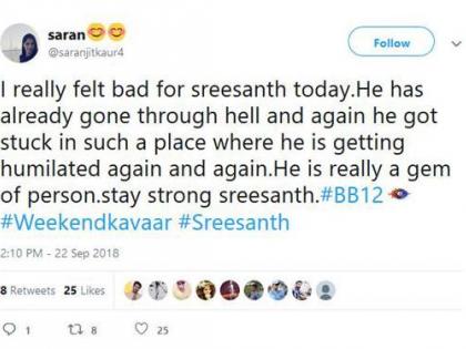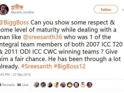 ज्याला कुणाला ही सलामी मिळते, त्याचा चेहरा काळा केला जातो. श्रीसंतसोबतही हेच झाले आणि त्याचे चाहते भडकले, चाहत्यांनी आपला हा संताप सोशल मीडियावर बोलून दाखवला. यानंतर अनेक चाहत्यांनी बिग बॉसला पक्षपाती ठरवले.
