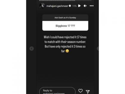 ‘बिग बॉस हिंदी’चं नवं पर्व लवकरच प्रेक्षकांच्या भेटीला येणार आहे. या नव्या पर्वात गश्मीर महाजनी सहभागी होणार असल्याच्या चर्चा आहेत. एका चाहत्याने गश्मीरला ‘बिग बॉस १७’मध्ये सहभागी होणार का? असा प्रश्न विचारला होता. यावर उत्तर देताना गश्मीरने बिग बॉसबद्दल खुलासा केला आहे. “मला बिग बॉसची ऑफर १७ वेळा नाकारता आली असती, तर त्यांच्या सीझन नंबरला आता मॅच करता आलं असतं. पण, मी आत्तापर्यंत फक्त तीन वेळा बिग बॉसची ऑफर नाकारली आहे,” असं उत्तर गश्मीरने दिलं आहे.