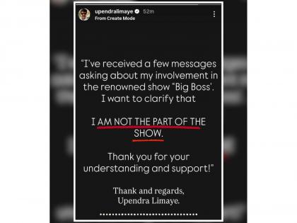 'बिग बॉस १९'मध्ये सहभागी होण्याबाबत उपेंद्र लिमये यांनी पोस्ट शेअर केली आहे. या पोस्टमधून त्यांनी स्पष्टीकरण दिलं आहे. "बिग बॉसच्या नव्या पर्वात सहभागी होण्याबाबत मला अनेकांकडून विचारणा झाली. पण, मी सांगू इच्छितो की मी या शोचा भाग नाही. तुमचा समजूतदारपणा आणि सपोर्ट यासाठी धन्यवाद", असं उपेंद्र लिमये यांनी पोस्टमध्ये म्हटलं आहे. त्यामुळे उपेंद्र लिमये 'बिग बॉस १९'मध्ये दिसणार नसल्याचं स्पष्ट झालं आहे.
