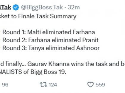 बिग बॉस अपडेट पेजनुसार, अत्यंत चुरशीच्या ठरलेल्या या टास्कमध्ये गौरव खन्ना याने बाजी मारली आहे. गौरव खन्ना हा 'बिग बॉस १९' च्या अंतिम फेरीत पोहोचणारा पहिला स्पर्धक ठरला आहे. पहिल्या फेरीत मालतीने फरहानाला बाहेर काढले. दुसऱ्या फेरीत फरहानाने प्रणितला बाहेर केले. तिसऱ्या फेरीत तान्याने अशनूरला बाहेर काढले. अखेरीस, गौरव खन्नाने हा टास्क जिंकून थेट अंतिम फेरीत आपले स्थान निश्चित केले आणि शोचा पहिला फायनलिस्ट बनण्याचा मान मिळवला.