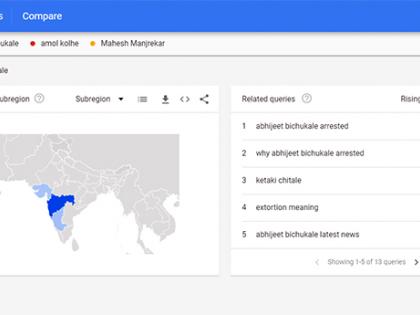 गुगल ट्रेण्डसच्या गत सात दिवसांच्या क्रमवारीत बिचुकलेचा सर्च वाढल्याचे दिसले. २१ जून म्हणजे, ज्या दिवशी त्याला अटक झाली, त्यादिवशी अभिजीत बिचकुले हे नाव सर्वाधिक सर्च केल्या गेले. सर्चच्या या शर्यतीत महेश मांजरेकर आणि अभिनेते व खासदार अमोल कोल्हे यांनाही त्याने मागे टाकले.