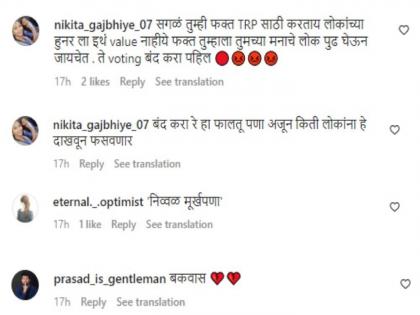 किरण मानेंचा हा व्हिडीओ समोर आला आणि तुफान व्हायरल झाला. अनेकांनी मात्र हा व्हिडीओ पाहून संताप व्यक्त केला. ‘सगळं तुम्ही फक्त टीआरपीसाठी करताय, लोकांच्या हुनरला इथं किंमत नाहीये. फक्त तुम्हाला तुमच्या मनाचे लोक पुढ घेऊन जायचेत . ते वोटींग बंद करा पहिल, अशी कमेंट एका युजरने केली आहे.