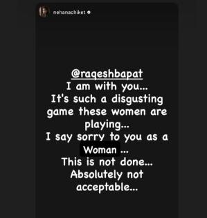 दरम्यान, राकेशच्या चाहत्यांनी हा हॅशटॅग ट्रेंड करत अभिनेत्याला पूर्णपणे पाठिंबा दिला आहे. आता बिग बॉस मराठीच्या दुसऱ्या पर्वाची उपविजेती, अभिनेत्री नेहा शितोळे हिने देखील राकेशची बाजू घेत या प्रकरणी संताप व्यक्त केला आहे. नेहा शितोळेने तिच्या अधिकृत इन्स्टाग्राम अकाउंटवर स्टोरी शेअर करत त्यामध्ये लिहिलंय,"राकेश बापट या प्रकरणात मी तुझ्यासोबत आहे. माझा तुला पाठिंबा आहे. या मुली अत्यंत वाईट पद्धतीने गेम खेळत आहे.एक स्त्री म्हणून मी तुझी माफी मागते. हे अजिबातच योग्य नाही." अशा आशयाची पोस्ट तिने लिहिली आहे.