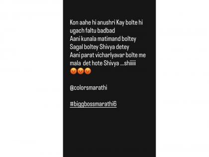 अभिनेत्री प्रतिक्षा मुणगेकर हिने इन्स्टाग्रामवर स्टोरीमध्ये अनुश्रीच्या वागणुकीवर संताप व्यक्त केला आहे.