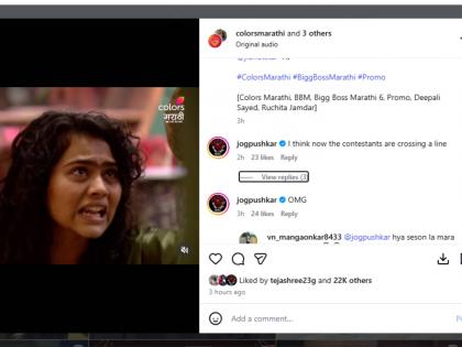 कलर्स मराठीने शेअर केलेल्या प्रोमोवर अनेकांनी कमेंट्स केल्या आहेत. त्या व्हिडीओवर चाहत्यांनी कमेंट करत रुचितावर संताप व्यक्त केला आहे. मराठी अभिनेता पुष्कर जोगनेही कमेंट केली आहे. "आता स्पर्धक त्यांची लाइन क्रॉस करत आहेत", अशी कमेंट करत त्याने संताप व्यक्त केला आहे.