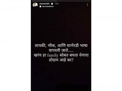 'जीव माझा गुंतला' मालिकेत योगिता आणि सौरभ मुख्य भूमिकेत होते. रील लाईफ मधली ही जोडी रिअल लाईफमध्येही प्रेमात पडली. त्यांच्या लग्नानंतर चाहते खूश झाले होते. सध्या योगिता बिग बॉसमध्ये असून समीर तिला बाहेरुन सपोर्ट करताना दिसतोय. योगिता वोट करण्याचं आवाहनही तो चाहत्यांना करतो. दरम्यान काल सौरभने या शोमध्ये असलेल्या भाषेवर आक्षेप घेत पोस्ट लिहिली. सौरभ चौघुलेने इन्स्टाग्रामवर स्टोरी शेअर करत लिहिले,'लायकी, भीक, आणि घाणेरडी भाषा वापरली जाते...खरंच हा फॅमिलीसोबत बघता येणारा प्रोग्राम आहे का?' असं त्याने लिहिलं.