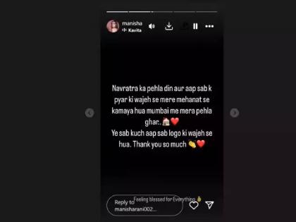मुंबईत घर घेणं हे या शहरात राहणाऱ्या प्रत्येकाचंच स्वप्न असतं. स्वत:चं, हक्काचं घर असावं हे प्रत्येकालाच वाटत असतं. पण, या स्वप्ननगरीत वाढलेल्या घराच्या किमती पाहता प्रत्येकाचंच हे स्वप्न पूर्ण होतंच असं नाही. पण, बिग बॉस फेम अभिनेत्रीने तिचं मुंबईत घर घेण्याचं स्वप्न पूर्ण केलं आहे. 'बिग बॉस ओटीटी' फेम अभिनेत्री मनिषा राणीने नुकतंच मुंबईत घर खरेदी केलं आहे.