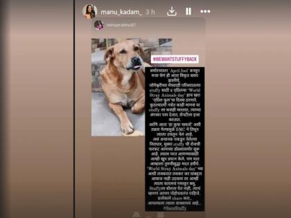 मृण्मयीने एक पोस्ट शेअर केली आहे. "समोरच्याला April Fool बनवून मजा घेणं ही आता विकृत सवय झालीये. जोगेश्वरीच्या मेघवाडी परिसरातल्या stuffy साठी ४ एप्रिलचा World Stray Animal Day हाच खरा एप्रिल फूल चा दिवस ठरणारे. कुठल्यातरी नशेत काही माणसं या stuffy ला कसंही मारतात, त्याच्या अंगावर पाय देतात, शेपटीला इजा करतात. आणि आता हा कुत्रा चावतो अशी तक्रार केल्यामुळे BMC ने तिथून त्याला उचलून नेलं आहे. असं अचानक पकडून नेलेल्या निराधार, मुक्या STUFFY ची रोजची फरफट आमच्या डोळ्यासमोर सुरु आहे. त्याला परत आणण्यासाठी आम्ही खूप प्रयत्न केले. पण यात आम्हाला तुमचीसुद्धा मदत हवीये. World Stray Animal Day च्या आधी लवकरात लवकर जर याबद्दल आवाज नाही उठवला तर त्याला कायमचं गमावून बसू. Stuffy ला बोलता येत नाही. त्याचं म्हणणं आपण पोहचवलंच पाहिजे. प्रत्येकाने शेअर करा. आपल्याला त्याला वाचवायचं आहे."