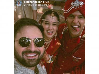 शाल्व किंजवडेकर आणि श्रेया डफळापूरकरच्या लग्नाला त्यांचे जवळचे मित्र सिद्धार्थ चांदेकर आणि मिताली मयेकरने हजेरी लावली आहे. सिद्धार्थने त्या दोघांसोबतचे फोटो शेअर केले आहेत. त्यात ते दोघे लाल रंगाच्या गेटअपमध्ये दिसत आहे. त्यांच्या डोक्याला बाशिंगदेखील पाहायला मिळत आहे.