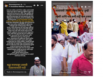 धनंजय पोवार याने संत तुकाराम महाराजाच्या अभंग गाथेतील अभंग क्र.११३५चा अर्थ आपल्या इन्स्टाग्राम स्टोरीवर शेअर केलाय. यासोबत धनंजय पोवारनं लिहलं, "श्रद्धा मनापासून असावी दिखाव्यासाठी नाही". तसेच आणखी एक फोटो शेअर करत "लावायची तेवढी ताकत लावा तुम्ही... भक्ती आणि भाव कभी नाही करू शकत" या शब्दात ट्रोलर्संना सुनावलं.