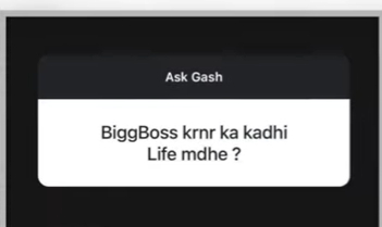 गश्मीर अनेकदा इन्स्टाग्रामवरुन askgashmeer हे सेशन घेत चाहत्यांच्या प्रश्नांना उत्तरं देतो. नुकतंच त्याने हे सेशन घेतलं होतं. यामध्ये चाहत्यांनी विचारलेल्या प्रश्नांना त्याने उत्तरं दिली. एका चाहत्याने गश्मीरला "बिग बॉस करणार का लाईफमध्ये कधी" असा प्रश्न विचारला. चाहत्याच्या या प्रश्नाला गश्मीरने अगदीच चोख उत्तर दिलं आहे. "तुम्हाला मराठी सिनेमा चांगला चालावा असं वाटतंय का?". तर याआधीही गश्मीरने 'बिग बॉस'मध्ये स्पर्धक म्हणून नाही तर शोचा होस्ट म्हणून जाण्याची इच्छा त्याने व्यक्त केली होती.