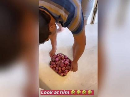हिना खानने इंस्टाग्राम स्टोरीवर एक व्हिडिओ शेअर केला आहे आहे. या व्हिडिओत हिनाचे वडील कांद्याची टोपलीसोबत दिसत आहेत आणि तिला ही टोपली बँकेच्या लॉकरमध्ये ठेवायला सांगत आहे.