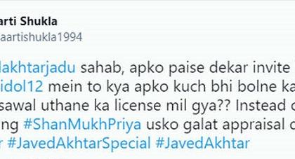 जावेद साहेब, इंडियन आयडलने पैसे देऊन निमंत्रित केले म्हणून तुम्ही काहीही बोलणार का? शन्मुखप्रियाला तिच्या सिंगींगसाठी चार सल्ले देण्याऐवजी तुम्ही तिला चुकीचे मार्गदर्शन केले, हे चूक आहे, असे अन्य एका युजरने लिहिले.