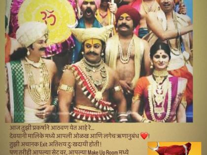 देवदत्त नागेने सोशल मीडियावर 'जय मल्हार' मालिकेतील काही फोटो पोस्ट करुन लिहिलंय की, "प्रति... अतुल अभ्यंकर.. अतुल... आज 18 May 2024! 18 May 2014, 7pm la Zee मराठी वर आपल्या "जय मल्हार” चा पहिला Episode प्रक्षेपित झाला.... आणि श्री खंडेराया चरणी आपली सेवा रुजू झाली!, आज तुझी प्रकर्षाने आठवण येत आहे रे... देवयानी मालिके मध्ये आपली ओळख आणि लगेच ऋणानुबंध' तुझी अचानक Exit अतिशय दुःखदायी होती! पण तरीही आपल्या सेट वर, आपल्या Make Up Room मध्ये तुझं अस्तित्व सतत जाणवत होतं !"