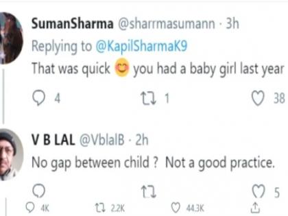 ही म्हणजे खूपच घाई झाली. गेल्याच वर्षी तुझ्या पत्नीने मुलीला जन्म दिला, असे एकाने लिहिले. मुलांच्या जन्मात अंतर का नाही? हे अजिबात योग्य नाही, असे एका युजरने त्याला सुनावले. एका युजरने तर यावरून कपिलची चांगलीच खिल्ली उडवली. ‘ओ भाई जी, गजब की स्पीड से लगे हो. एक के बाद एक प्रॉडक्शन सुरु है, बिना रूके,’ असे त्याने लिहिले.