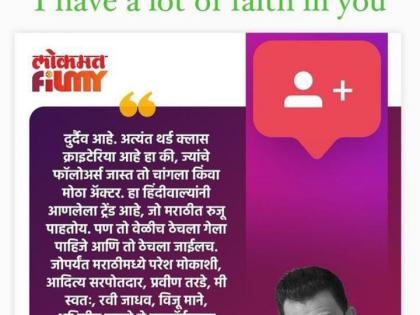 काही दिवसांपुर्वी प्रसाद ओक म्हणाला होता, "दुर्दैवी आहे. अत्यंत थर्ड क्लास क्राइटेरिया आहे हा की, ज्यांचे फॉलोअर्स जास्त तो चांगला किंवा मोठा अॅक्टर्स. हा हिंदीवाल्यांनी आणलेला ट्रेंड आहे, जो मराठीत रुजू पाहतोय. पण तो वेळीच ठेचला गेला पाहिजे आणि तो ठेचला जाईलच. जोपर्यंत मराठीमध्ये परेश मोकाशी, आदित्य सरपोतदार, प्रवीण तरडे, मी स्वतः, रवी जाधव, विजू माने, अभिजीत पानसे.. अशी अनेक नावं घेता येतील माझ्या सहकारी मित्रांची, जे परफॉर्मन्सवर विश्वास ठेवणारे दिग्दर्शक आहेत. तोपर्यंत फॉलोअर्सच्या कॅटगिरीचा मराठीत काही फार फरक पडेल किंवा त्याने काही खूप मोठा बदल होईल असं मला तरी वाटतं नाही."