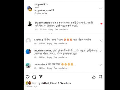 "माकड करुन टाकला राव हिंदीवाल्यांनी...मराठी वाहिनीवर वर होता तेव्हा इतकं वाह्यात केलं नव्हतं", "गौऱ्याचा माकड केलाय", "हो हो हो तुमची कॉमेडी...जोकर झालाय पार तुझा" अशा कमेंट्स नेटकऱ्यांनी केल्या आहेत.