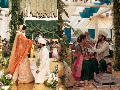 मराठमोळा अभिनेता कुणाल धुमाळच्या (Kunal Dhumal) लग्नाचे फोटो समोर आले आहेत. काल त्याचा लग्नसोहळा पार पडला. कलर्स मराठीवरील 'सुंदरा मनामध्ये भरली' या मालिकेत तो देवव्रत कारखानीसच्या भूमिकेत होता. कुणाल या मालिकेमुळे घराघरात पोहोचला होता. कुणालने डॉ. सोनाली काजबेसोबत लग्नगाठ बांधली आहे. त्यांच्या लग्नाचे फोटो सोशल मीडियावर व्हायरल झाले आहेत. कुणाल आणि सोनालीचे लग्नात दोन लूक होते. एकामध्ये सोनाली हिरव्या नऊवारीत अतिशय सुंदर दिसत आहे. तर कुणालने पांढरा कुर्ता आणि हिरवा पायजमा घातला आहे. त्याच्या डोक्यावर पारंपरिक टोपी आहे. तर दुसऱ्या लूकमध्ये सोनालीने केशरी लेहेंगा परिधान केला आहे. त्यांचे सुंदर फोटो पाहून सोशल मीडियावर चाहत्यांनी त्यांच्यावर अभिनंदनाचा वर्षाव केला आहे.