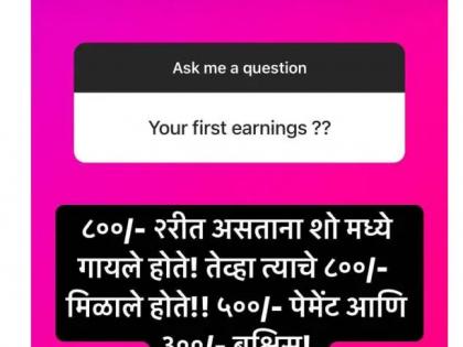 अलिकडेच जुईने इन्स्टाग्रामवर ‘Ask me a Question’ हे सेशन ठेवलं होतं. यावेळी तिने चाहत्यांनी विचारलेल्या अनेक प्रश्नांची उत्तरं दिली. यावेळी एका चाहत्याने तिला तुझी पहिली कमाई किती होती, हा प्रश्न केला. यावर उत्तरात ती म्हणाली, 'माझी पहिली कमाई आठशे रुपये होती. दुसरीत असताना मी शोमध्ये गायले होते. तेव्हा त्याचे आठशे रुपये मिळाले होते. आठशेपैकी पाचशे रुपये पैशाच्या स्वरुपात आणि उरलेल्या तीनशे रुपयांचं बक्षिस मिळालं होतं'.