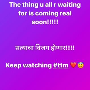 या मालिकेत मुख्य भूमिकेत असलेली सायली म्हणजेच जुई गडकरी हिनं तिच्या सोशल मीडियावर एक पोस्ट केली आहे. त्यामुळे मालिकेत लवकरच एक सत्य बाहेर येणार असल्याचं म्हटलं जात आहे. जुईने तिच्या इन्स्टाग्राम स्टोरीमध्ये म्हटलं की, "ज्याची तुम्ही सगळेजण आतुरतेने वाट पाहत होता, अखेर सत्याचा विजय होणार. त्यासाठी पाहत राहा ठरलं तर मग'. जुईच्या या पोस्टमुळे मालिकेत नेमकं काय होणार याची उत्सुकता सध्या प्रेक्षकांना लागून राहिली आहे.