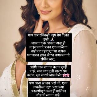 पुढे अभिनेत्रीने लिहिलंय, "पण, आता झालंय असं की, एका तब्येतीच्या सुरू असलेल्या अडचणीमुळे मला ही मालिका सोडावी लागत आहे. पण तरी एका नव्या भूमिकेत तुमचं मनोरंजन करण्यास पुन्हा सज्ज होईन अशी खात्री आहे. माझ्यासाठी प्रार्थना नक्की करा." अशी पोस्ट अभिनेत्रीने सोशल मीडियावर शेअर केली आहे.